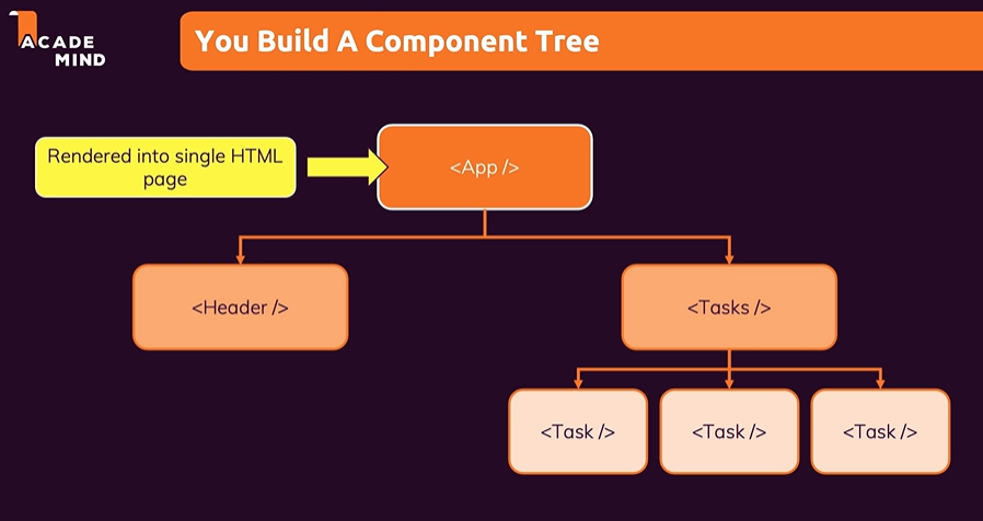- 맨 위에 있는 컴포넌트만이 리액트 돔 렌더의 지시로 html 페이지에 직접 렌더링 된다.
