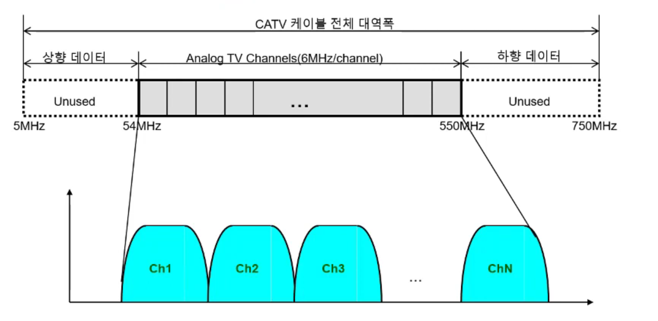 이것도 DSL과 마찬가지로 동시에 비디오 신호와 인터넷 데이터 신호를
