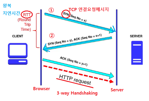 - TCP 연결 지연시간 발생 // 단점