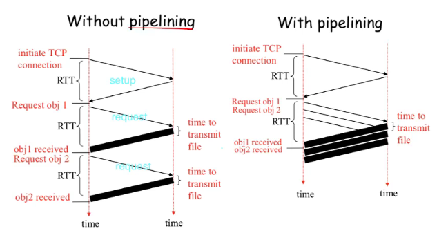 - 객체별 지연시간: 2RTT + 객체파일 전송시간