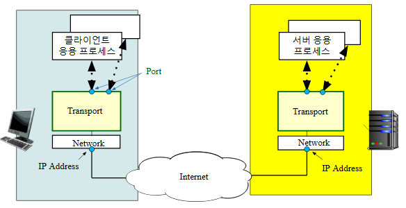 - 응용 프로세스 주소: 소켓 주소 (IP 주소 + 포트번호)
