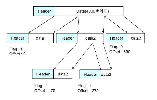 : 데이터+헤더가 MTU가 되게 나누어서,