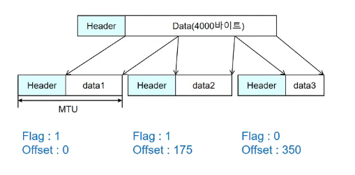 - IP 데이터그램 단편화(Fragmentation)
