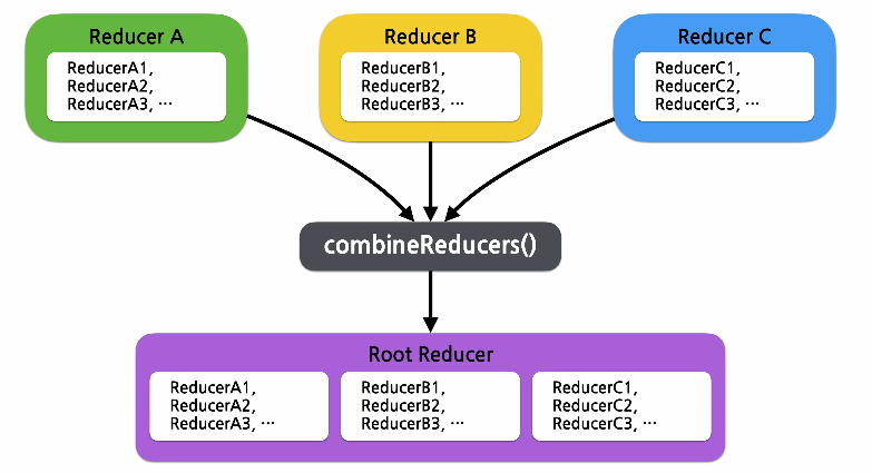 : 여러 개의 리듀서들을 하나로 모으는 역할