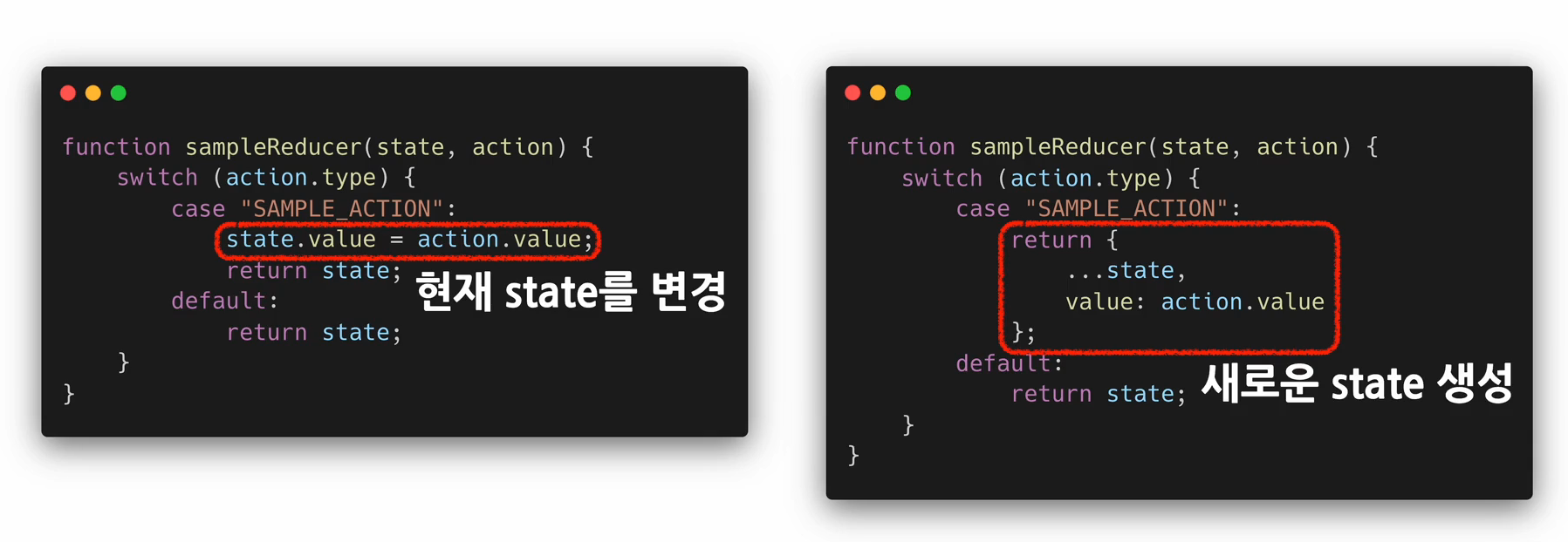 → pure function을 위한 규칙 - Not allowed to modify the existing state.